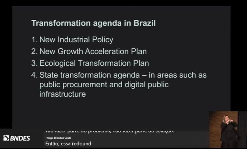 Industrial policy measures can be unsuccessful for all sorts of reasons. Mariana Mazzucato gave a lecture (youtube) earlier in the week in Sao Paolo as a member of Brazil’s TF Clima group of experts advancing action on climate change, in which she described how industrial policy can be prone to corruption and crony capitalism. She cited Brazil’s support for agribusiness as a prime example of industrial policy that is part of problem, and said public banks in her home country of Italy too are corrupt. She spoke favourably of Brazil’s development bank, BNDES, and has written a paper comparing BNDES with Germany’s KFW noting how German public support to the steel sector was conditional on making green steel. Mazzucato has been advising the Brazilian government on their missions to deliver national tranformation. We at Polycrisis wrote in 2022 “a Lula election is better for the planetary climate than anything that happens at COPs”