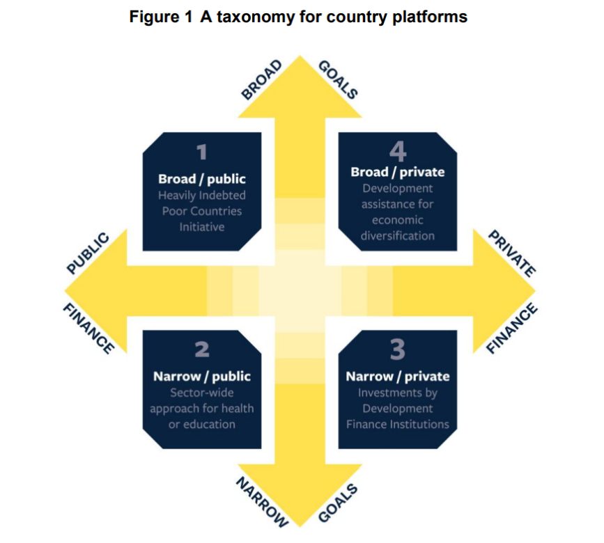 ODI proposes a taxonomy of country platforms, to navigate the different goals and sources of finance: