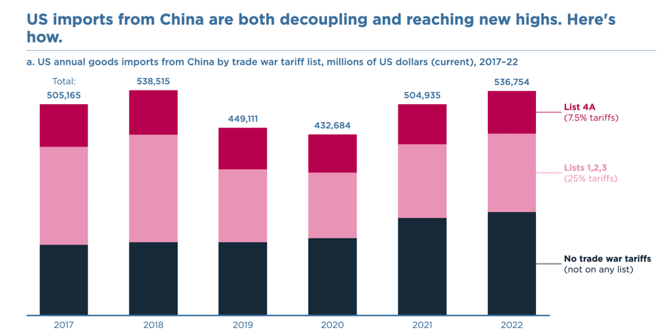 4.Schrodingers decoupling: US imports from China are both decoupling AND reaching new highs. We wrote about the resilience of China in the economic war last year. The value of imports not under trade war tariffs has grown so much that they outweigh the decline in imports from China of products hit by the trade war tariffs. Secondly, while US has diversified away from China, it has sought goods from Mexico and EU, who in turn have deepened their trade relationship with China.