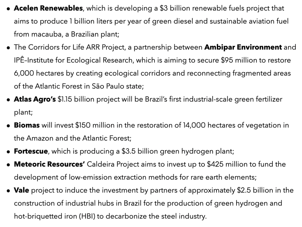 The core proposition is that Brazil’s development bank, BNDES, will identify projects that align with the country’s Ecological Transformation Plan, its Nova Industria plan and its updated Nationally Determined Contribution; the climate target plan submitted to the UNFCCC last year. The idea is that this means investors will… invest in them? The six pilot projects announced this week are intended to “mobilize” a big number: $10.8 billion once final investment decisions are made.