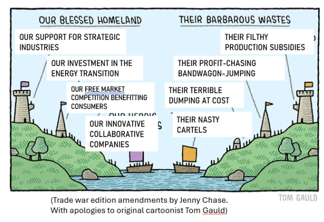 The Polycrisis take: everyone needs to drop the narrative of “Our Glorious Industry / Your Subsidised Chaos” and start saying we are in a green structural transformation. This is not narrowly about cars but about the underlying conflict in the world order.