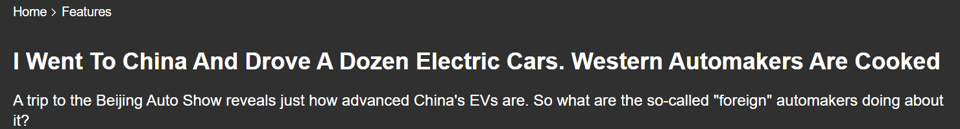 There is no doubt among observers that the Cambrian explosion of Chinese EV firms over the past 5 years—there are now over 200 EV manufacturers in a Darwinian life and death competition for margins and market share—has led to Chinese EVs vastly improving for consumers. They are faster, better, shinier, more entertaining, and cheaper than their Western counterparts.