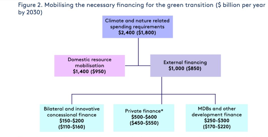 The world’s climate finance needs are estimated at $2.4 trillion a year – but more than half of that estimate is domestic finance: